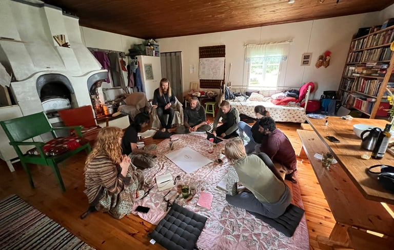 Nestled between birch and pine, Athari is a quiet breath of nature—open, grounding, and alive. We gather by the lake, where the waters mirror the sky and the days stretch long with northern light. This is an old family cottage, once home to our host’s lineage, now holding space for new stories to unfold.